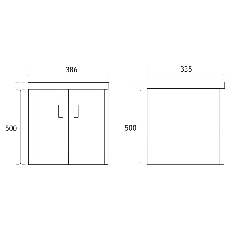 - 335mm (L) x 386mm (W) x 500mm (H)
