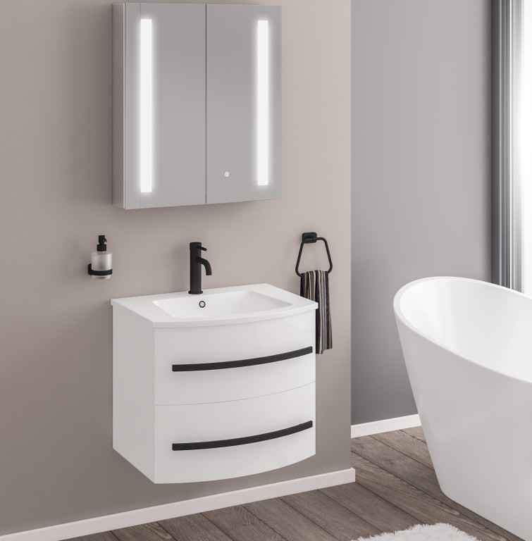 • Bathroom Furniture Wall Hung Furniture Wall Hung Vanity Units Centa Curved Wall Hung Unit - High Gloss White