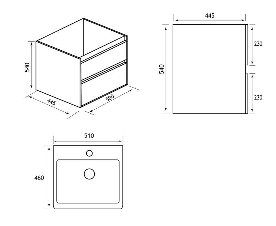 - 445mm (L) x 500mm (W) x 540mm (H)