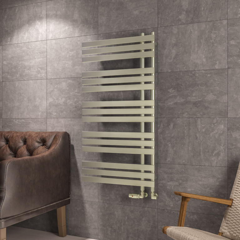 Download (0.59 MB)New Leonardo 1200 x 600 Towel rail. The single sided pipes on this wonderfully stylish Leonardo rail allows maximium hanging space. With its reversible design, Leonardo towel rail is available in chrome and brushed brass.