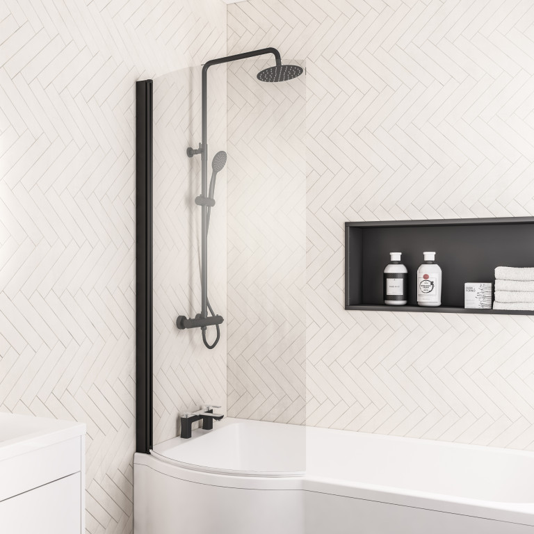 P Shape Bath Screen Left Handed - Matt Black
