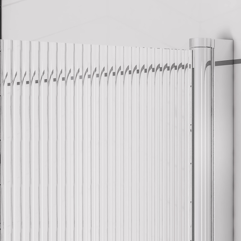 6mm Straight bath screen in fluted glass Left Handed - Chrome