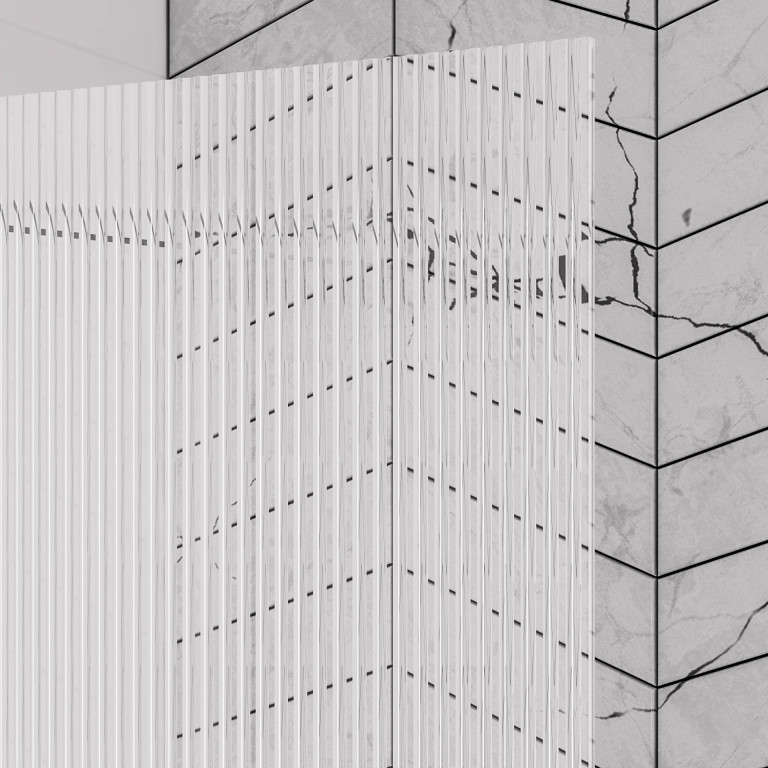 6mm Straight bath screen in fluted glass Right Handed - Chrome
