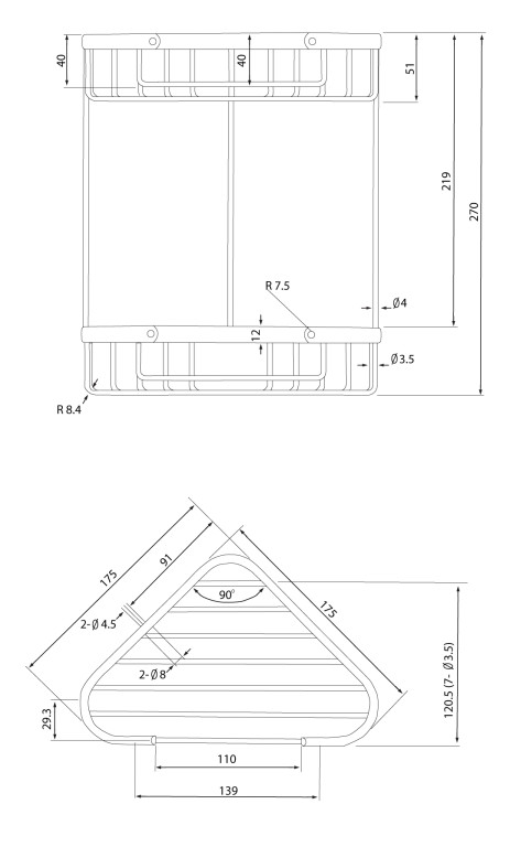 - 125mm (L) x 264mm (W) x 55mm (H)