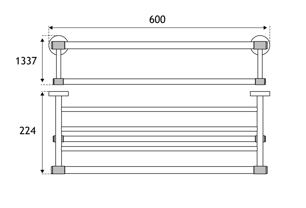 - 224mm (L) x 600mm (W) x 133.7mm (H)