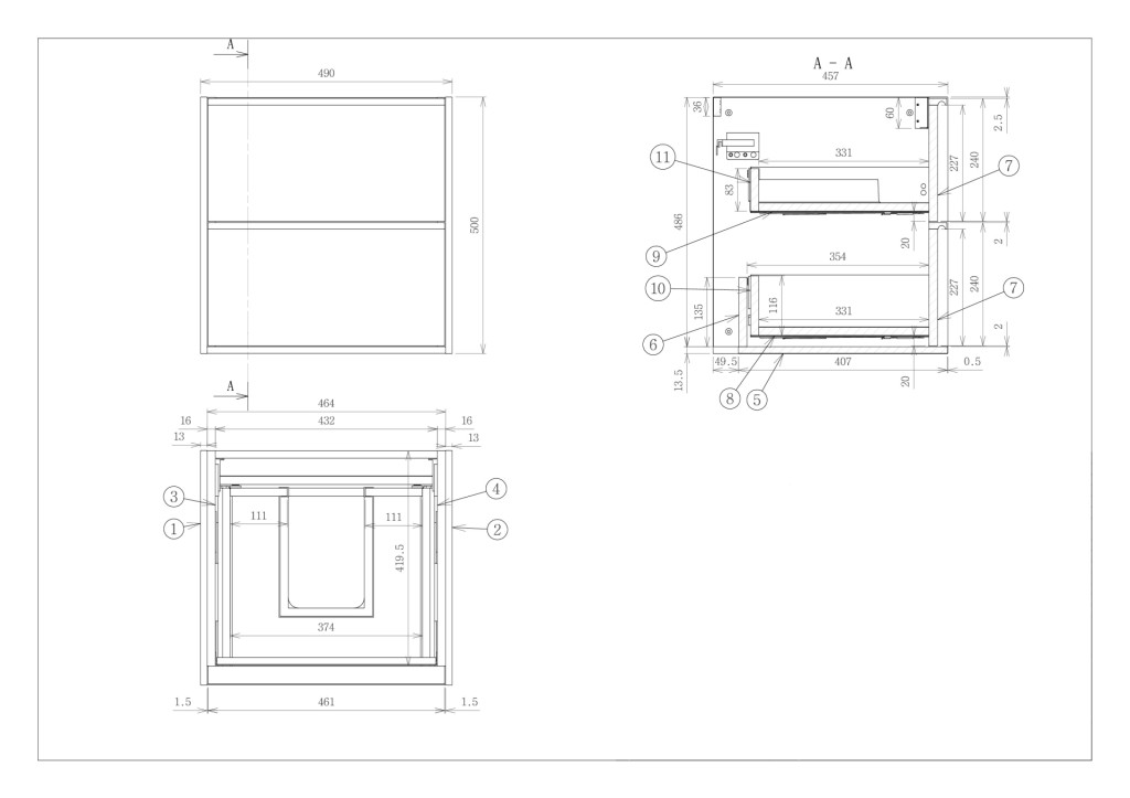 - 457mm (L) x 490mm (W) x 500mm (H)