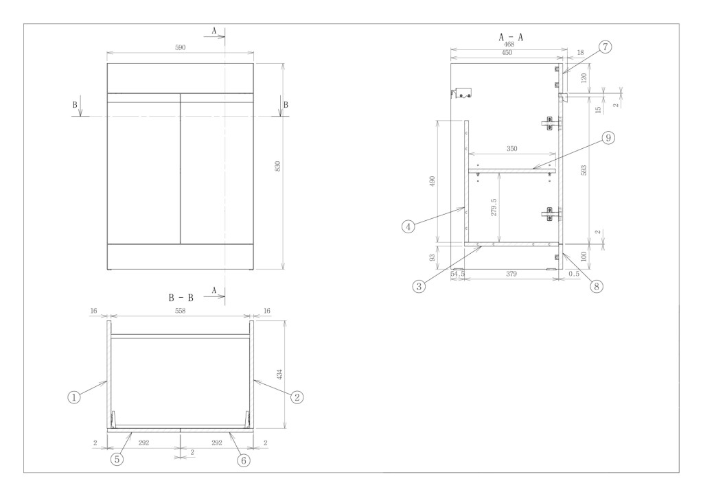 - 468mm (L) x 590mm (W) x 830mm (H)