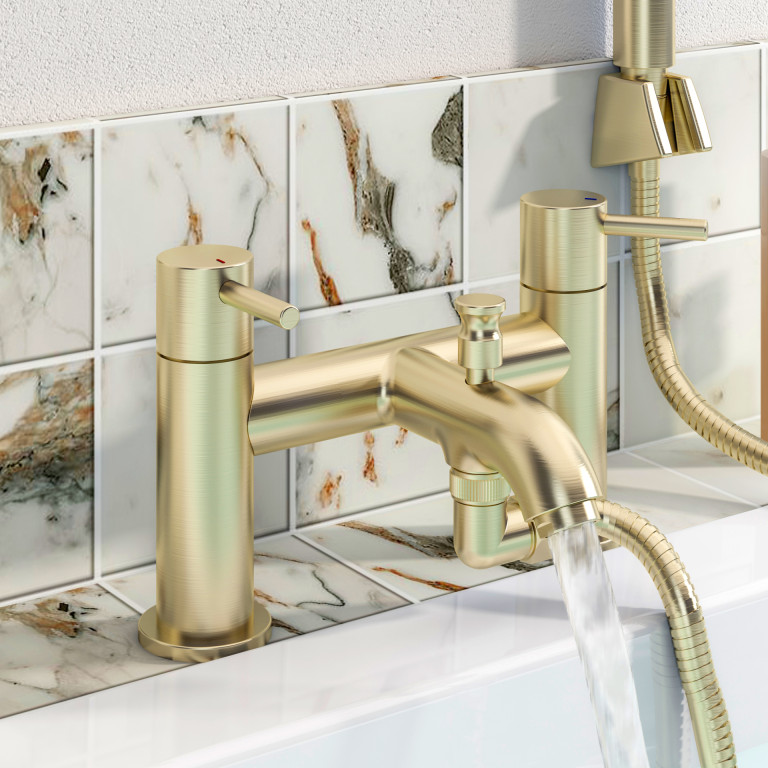 Meriden Bath Shower Mixer Hand set & hose & holder - Brushed Brass