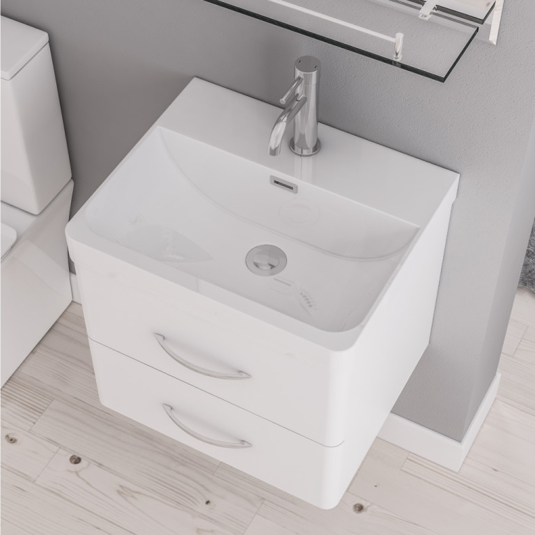 Cavone 60cm Ceramic Cabinet Basin only 1 Tap Hole - Gloss White (Vanity unit Sold...