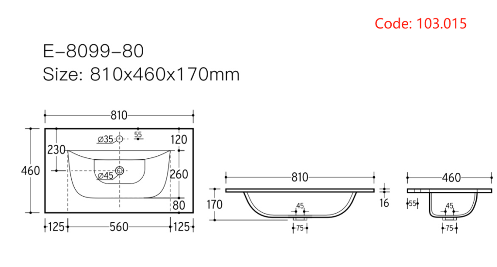 Universal 500 Basin only - White (Vanity unit Sold Separately)
