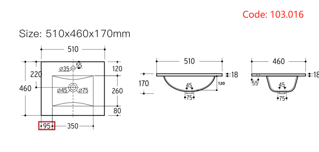 Universal 500 Basin only - White (Vanity unit Sold Separately)