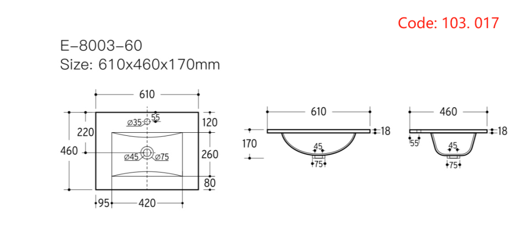 Universal 500 Basin only - White (Vanity unit Sold Separately)
