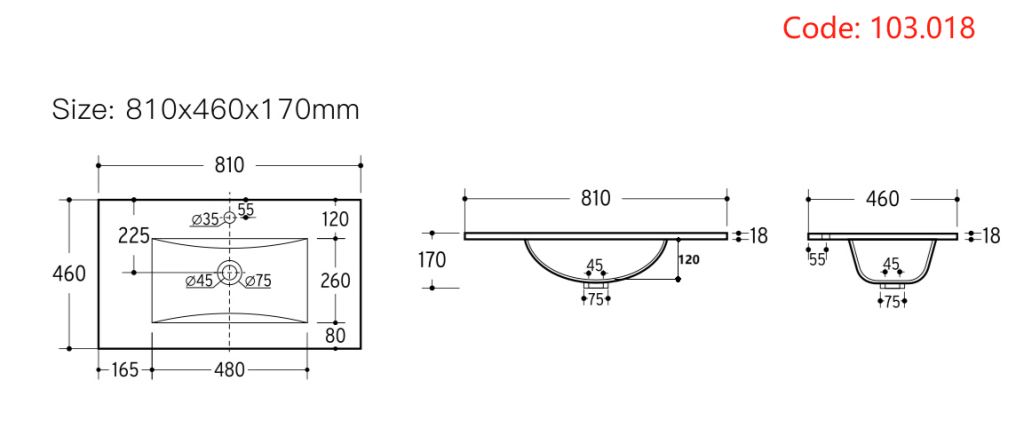 Universal 800 Round Ceramic Basinonly 1 Tap Hole - White (Vanity unit Sold Separately)
